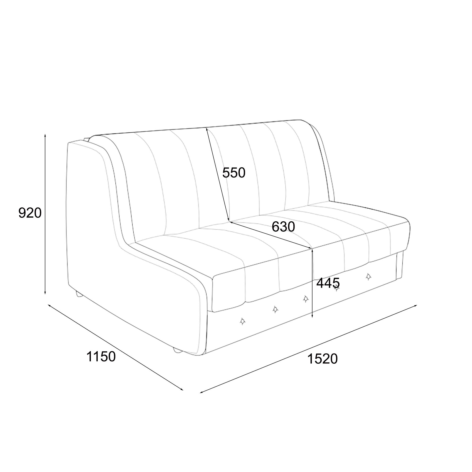 Диван в разложенном виде: В86 х Ш152 х Г223 см.