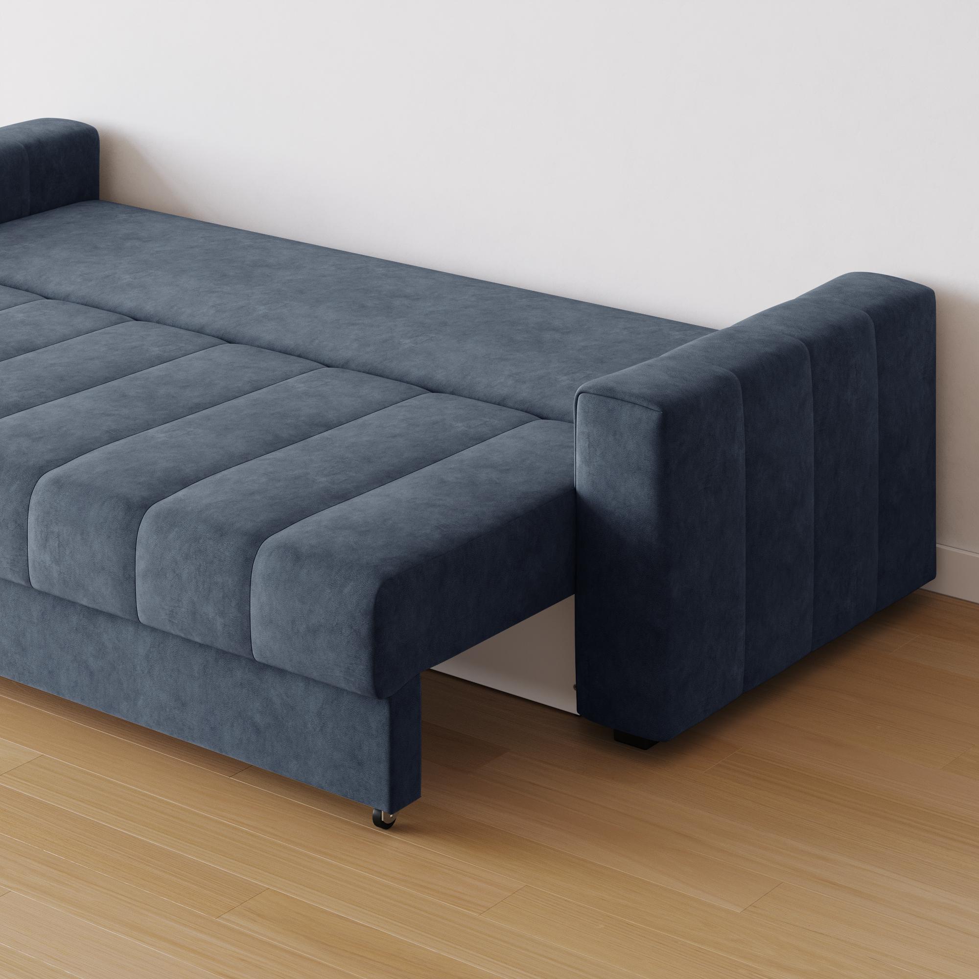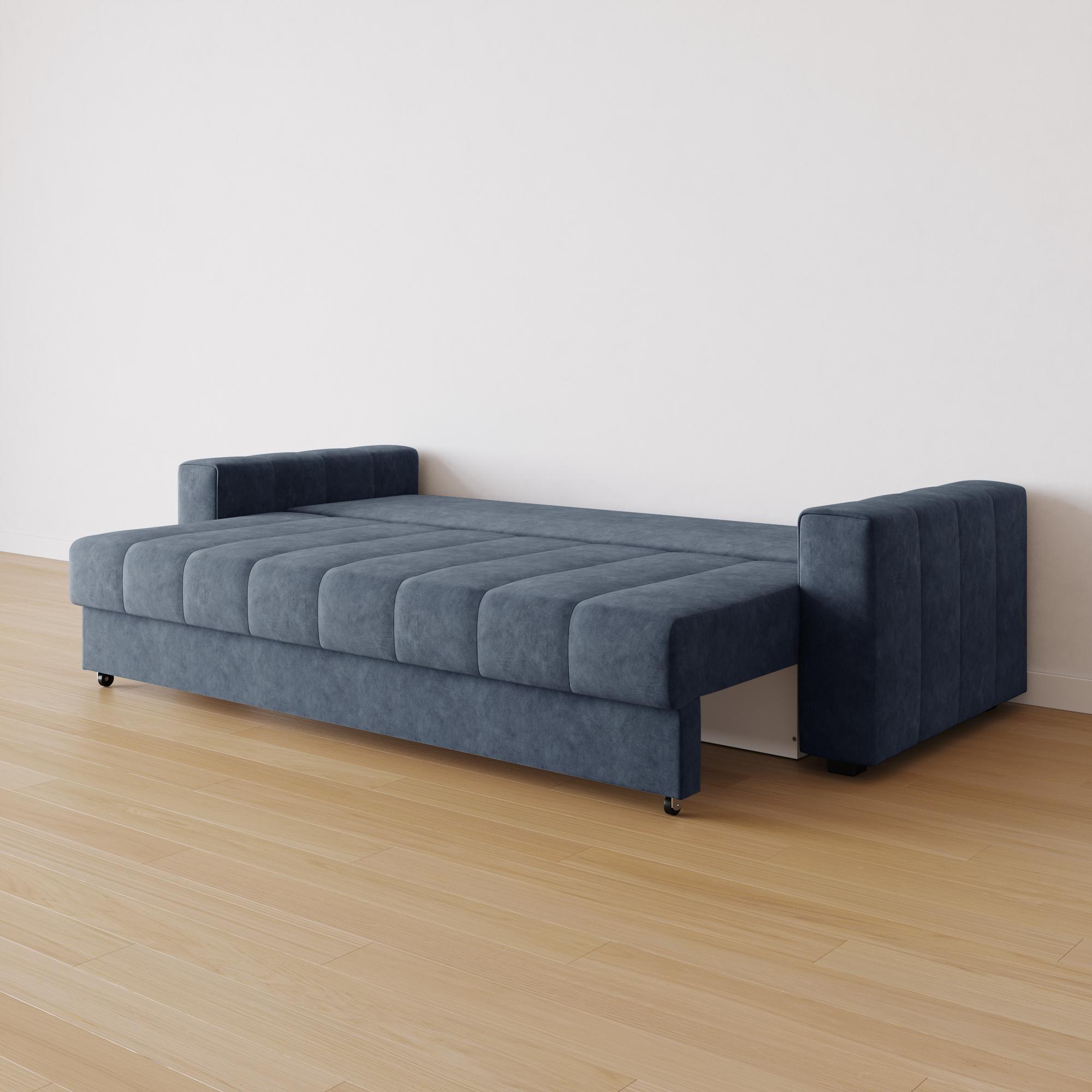 Механизм трансформации «Еврокнижка». Диван легко раскладывается в ровное спальное место — нужно выкатить вперёд сиденье и опустить спинку.