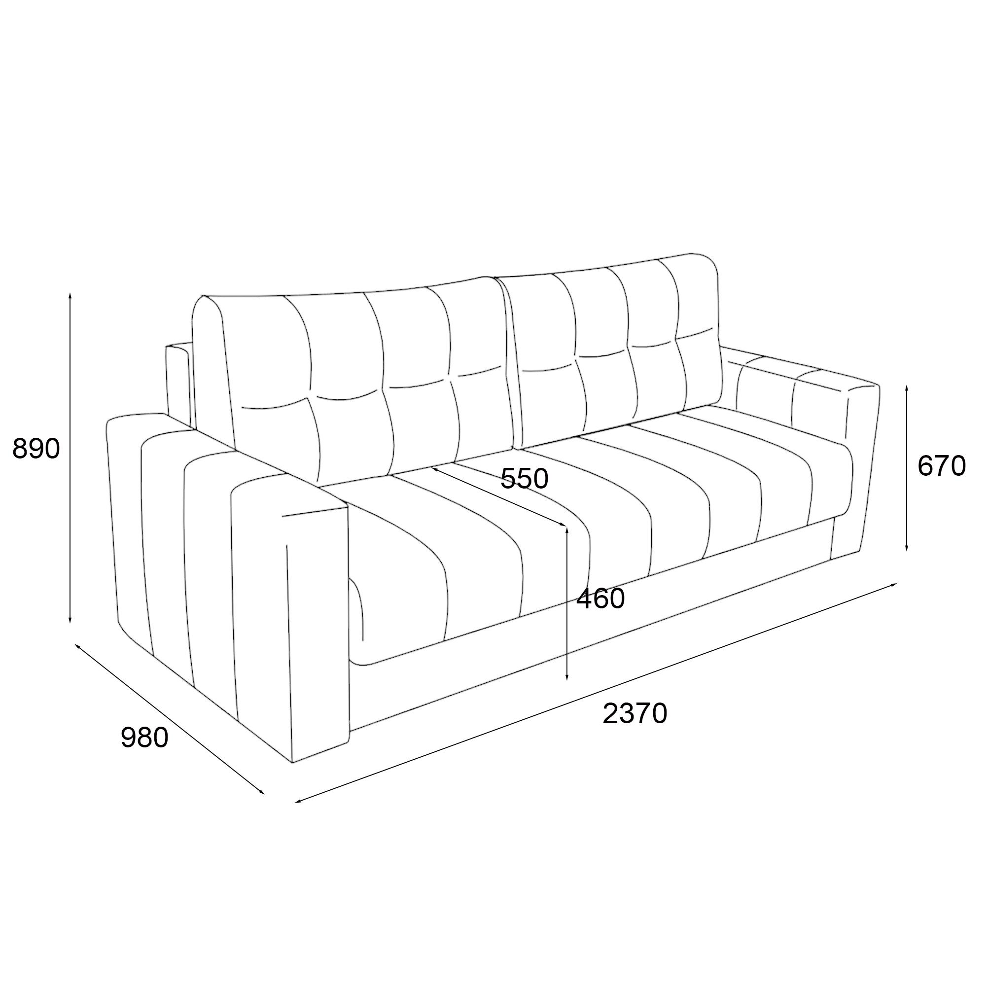 Диван в разложенном виде: 67 х 237 х 140 см.