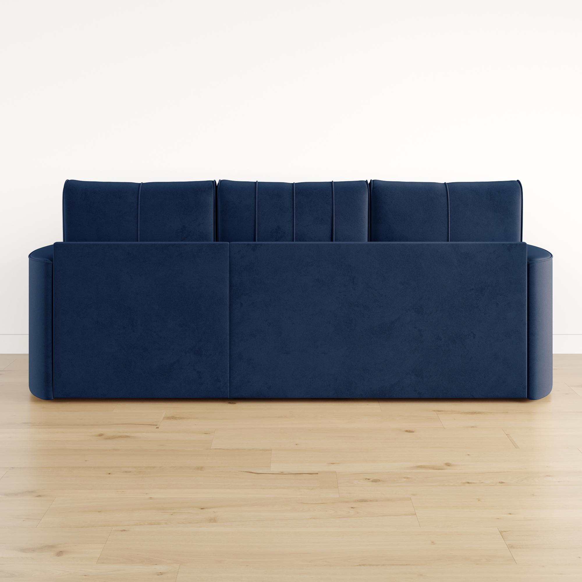 - Обивка из велюра. Обивка дивана выполнена из мягкой и приятной на ощупь ткани, которая пропускает воздух, тянется, устойчива к истиранию и выцветанию.
