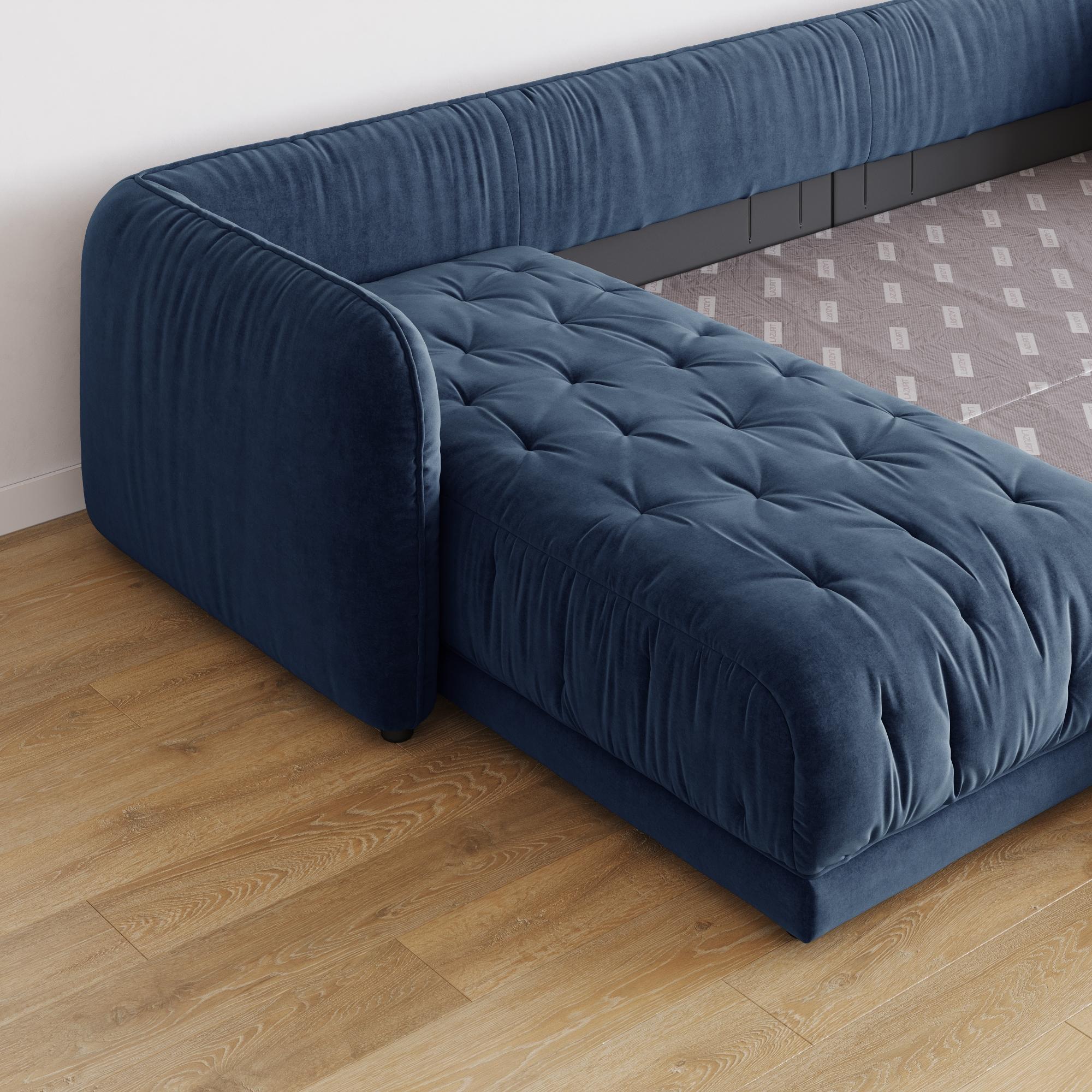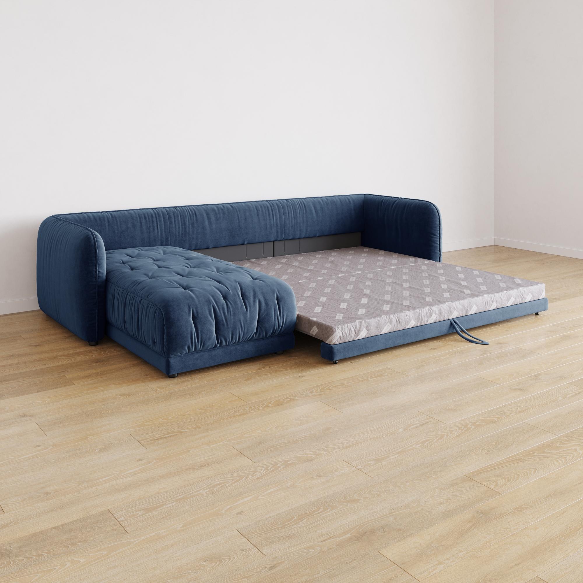 Механизм трансформации «Выкатной». Чтобы разложить диван, достаточно выкатить сиденье вперед за петлю, снять чехол и разложить половинку сиденья.