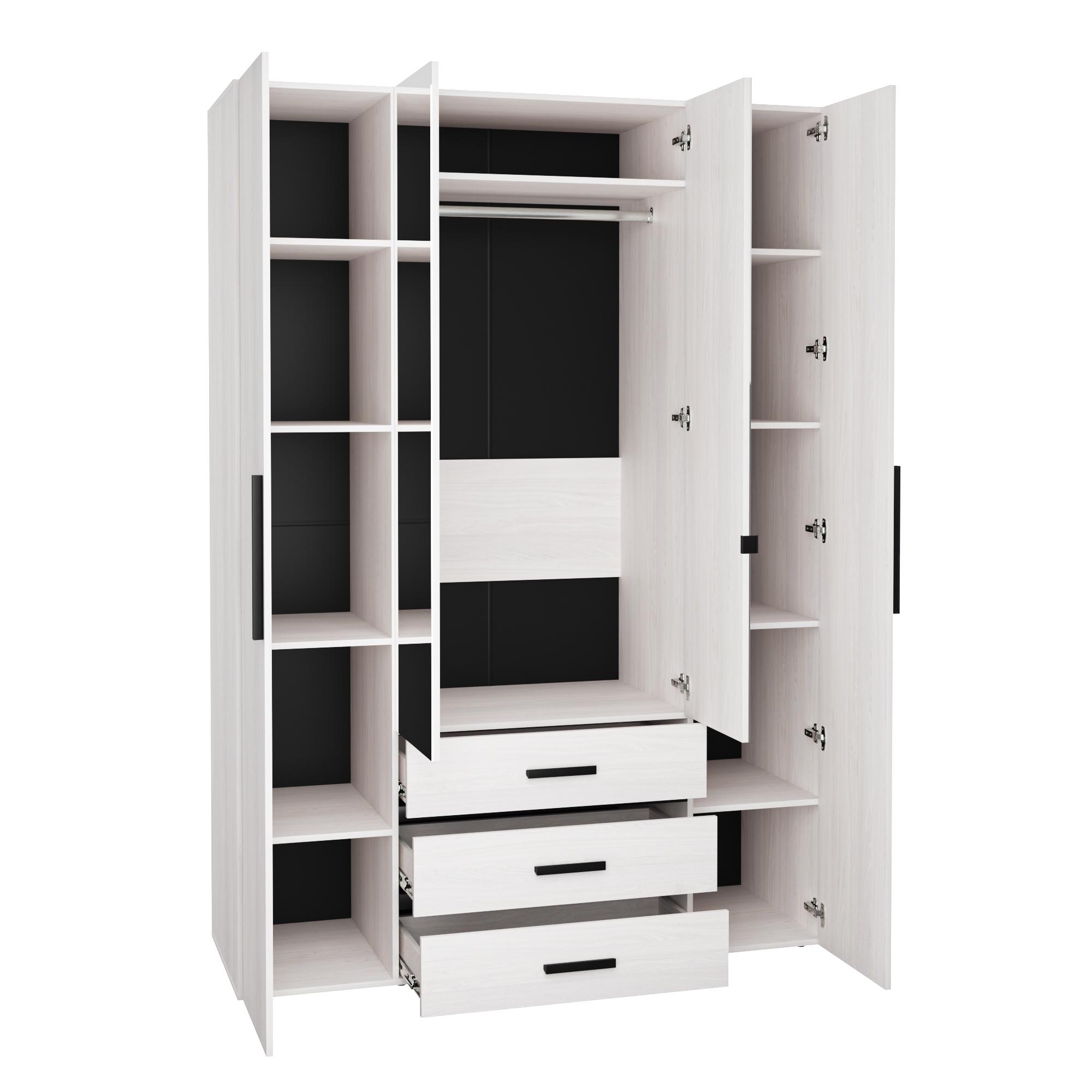 - Вместительный шкаф с зеркалом. Элегантный и стильный четырёхстворчатый модуль поможет не только разместить предметы гардероба, но и оценить внешний вид благодаря двум зеркалам на фасадах.