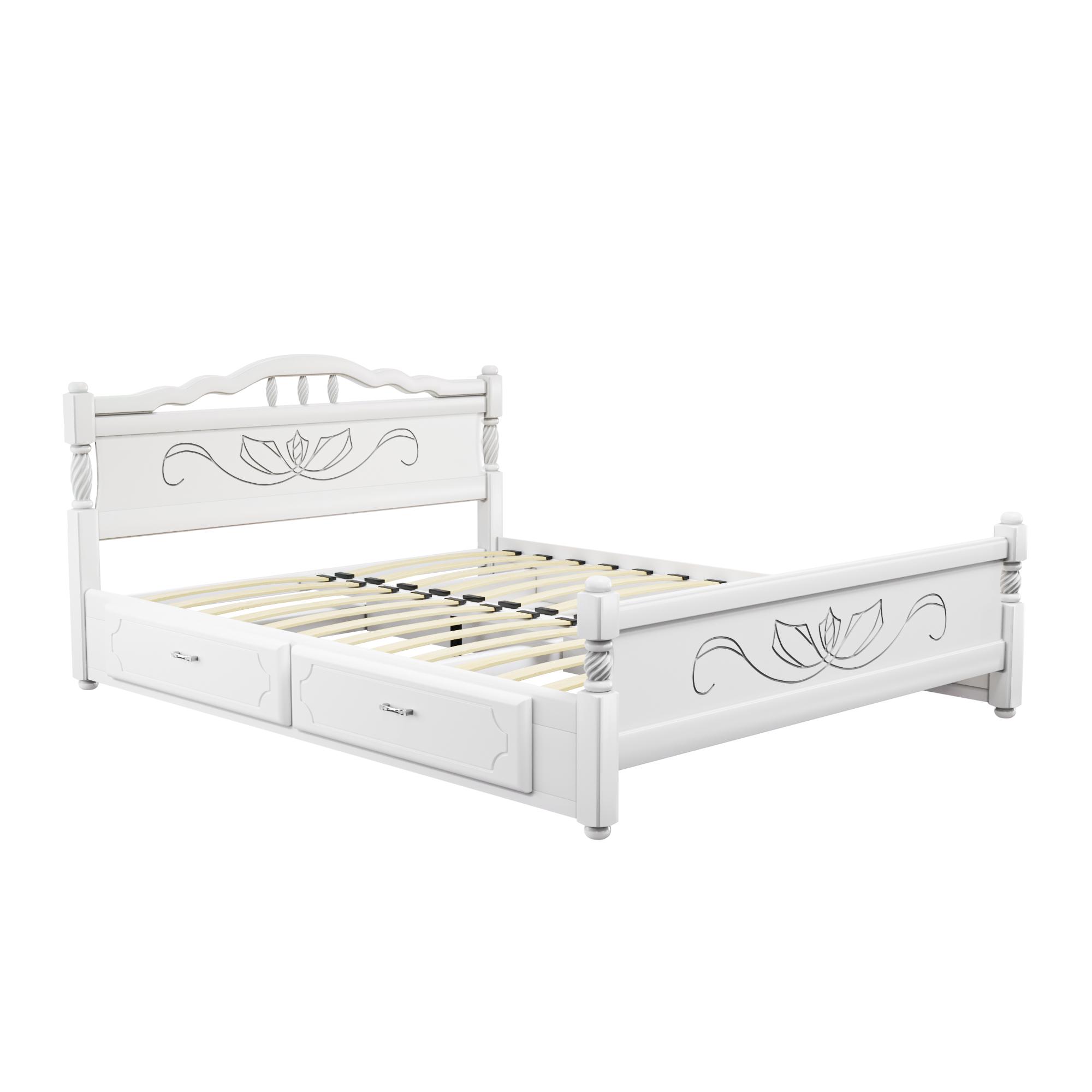 Элегантный декор. Изголовье и изножье из массива сосны украшено рамчатой вставкой с винтажным узором.