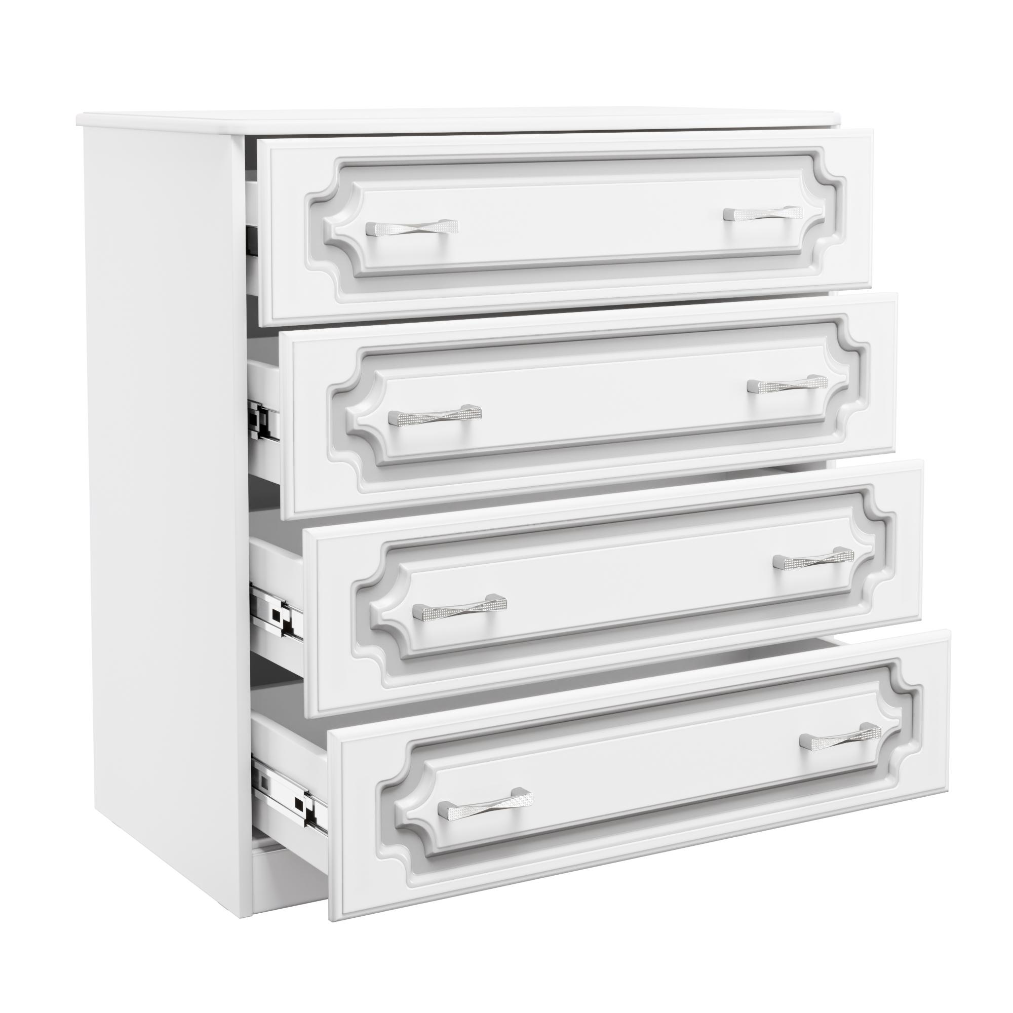 Фрезерованные фасады комода дополнены винтажными ручками, придающими визуальную лёгкость и утонченность.