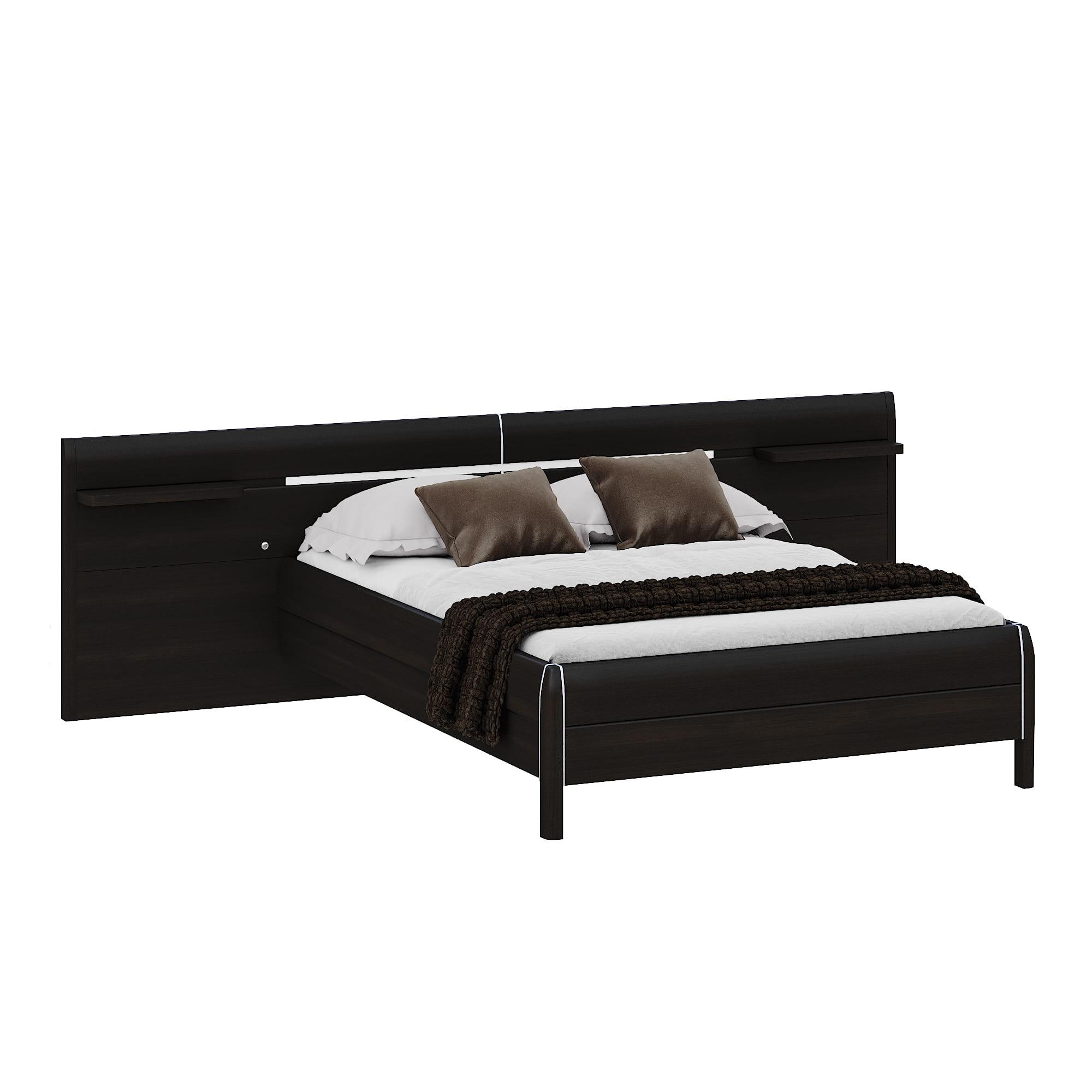 Экран спинки с полочками. Оригинальная спинка выходит за границы кровати и позволяет четко обозначить зону для сна. С каждой стороны экрана вверху располагаются полочки для хранения мелочей.