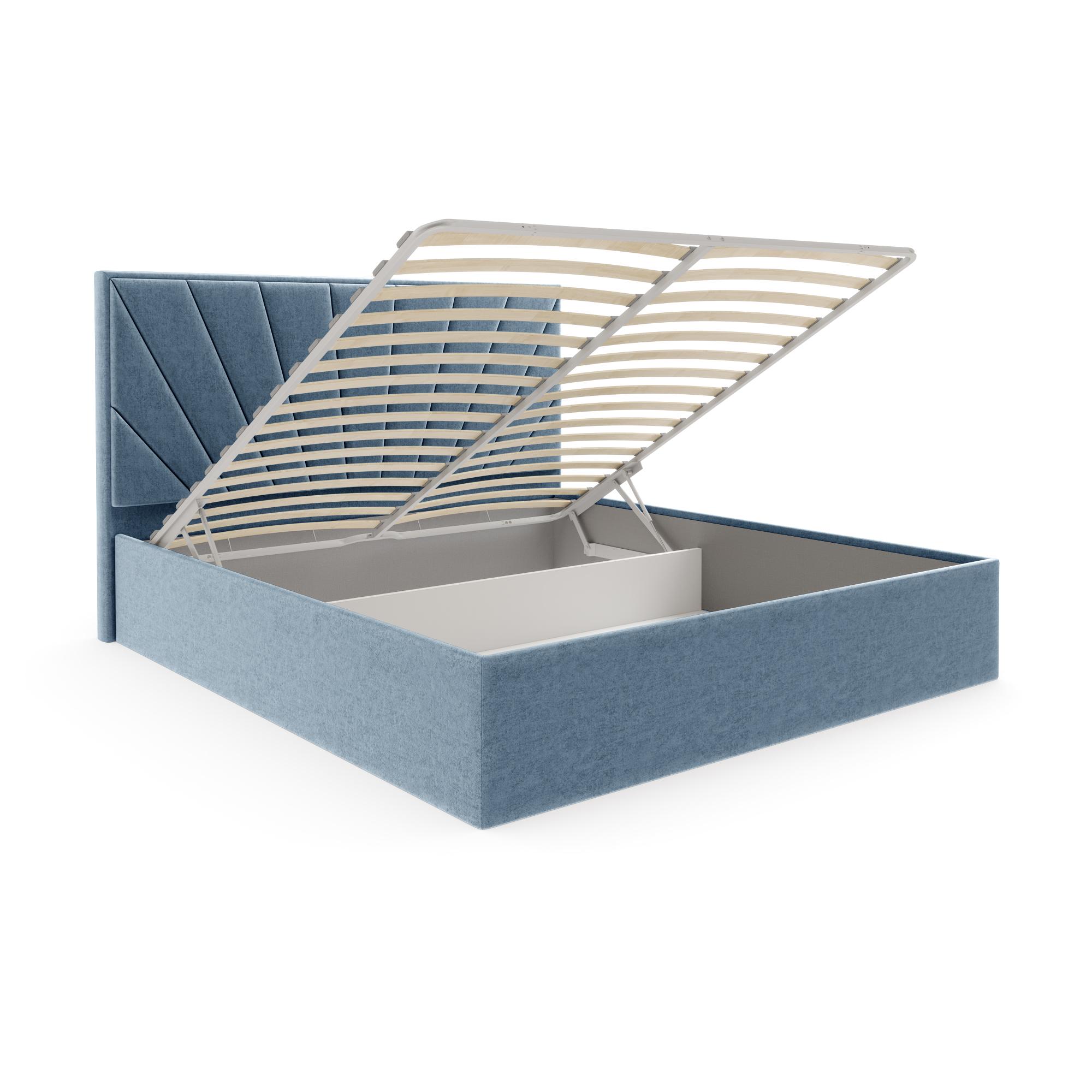 Подъемный механизм поднимает и опускает основание кровати вместе с матрасом, открывая доступ к пространству для хранения вещей.