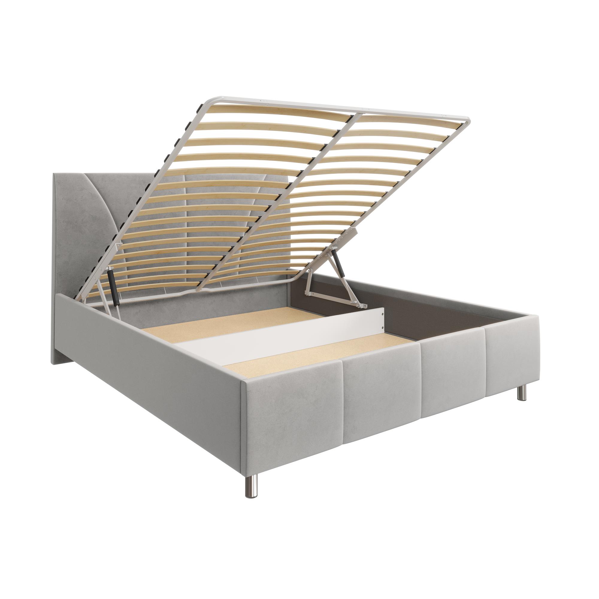 Удобный доступ к коробу. Механизм поднимает и опускает основание кровати вместе с матрасом, открывая доступ к пространству для хранения вещей.