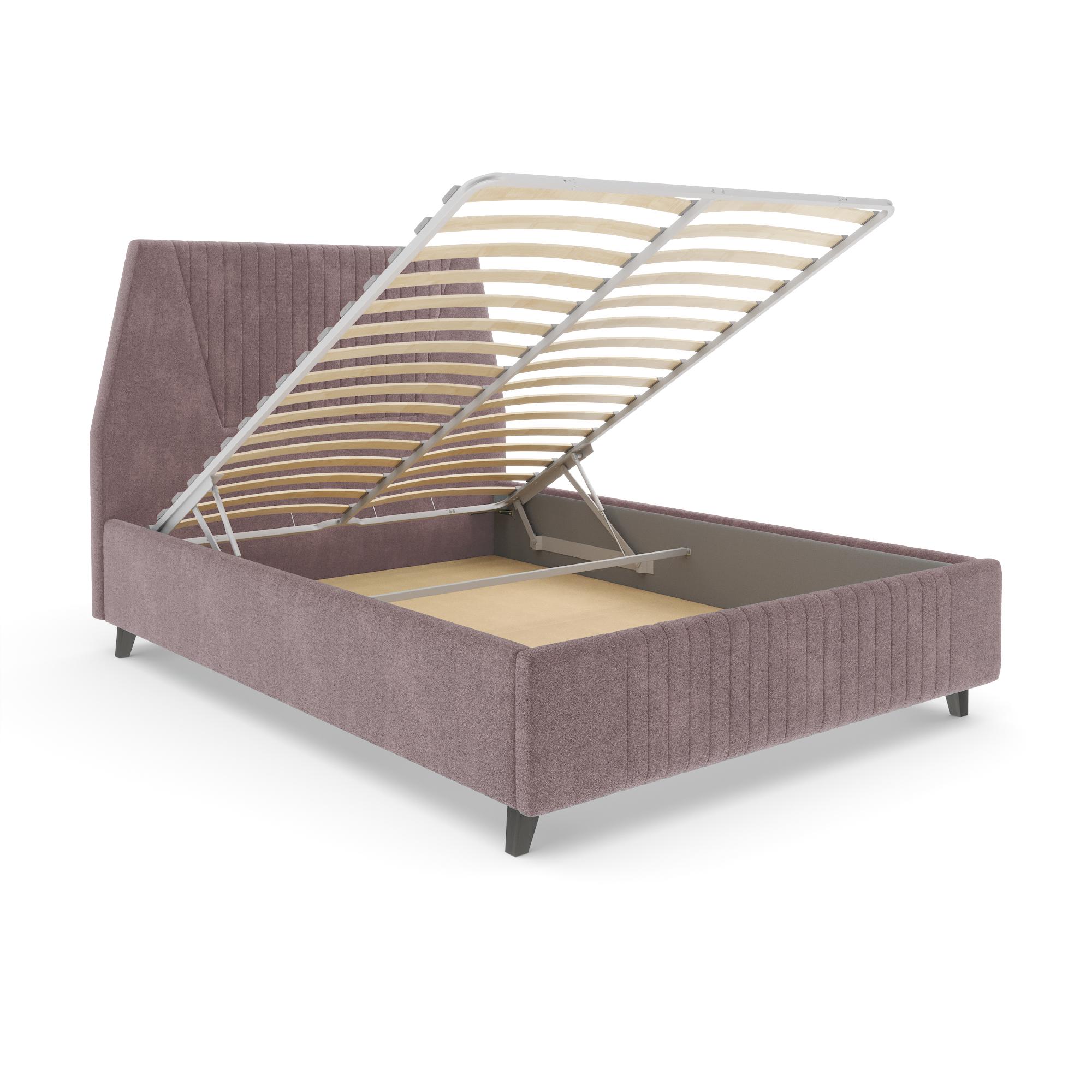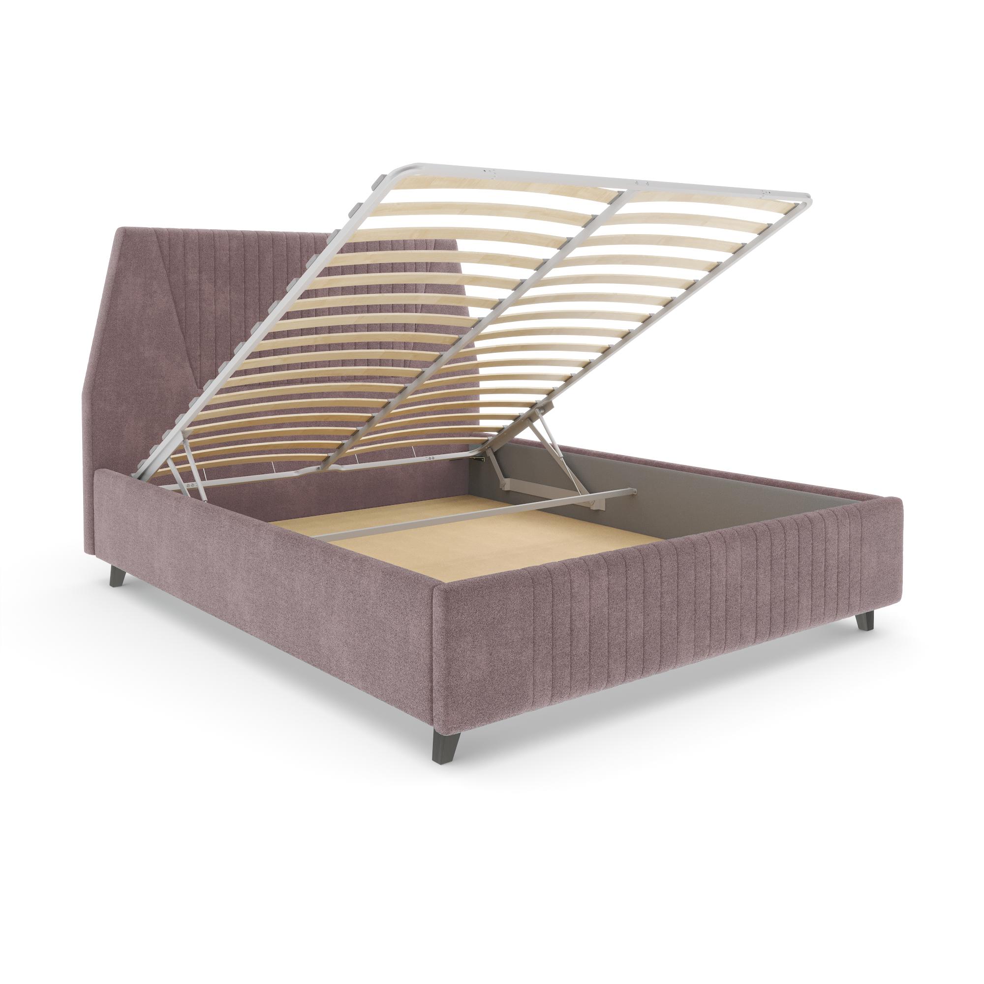 Дизайн на 360 градусов. Задняя спинка кровати выполнена в основной ткани, поэтому модель можно расположить в любой части комнаты, зонировать с её помощью пространство спальни. Подъемный механизм. Основание легко поднимается, открывая доступ к пространству для хранения вещей.