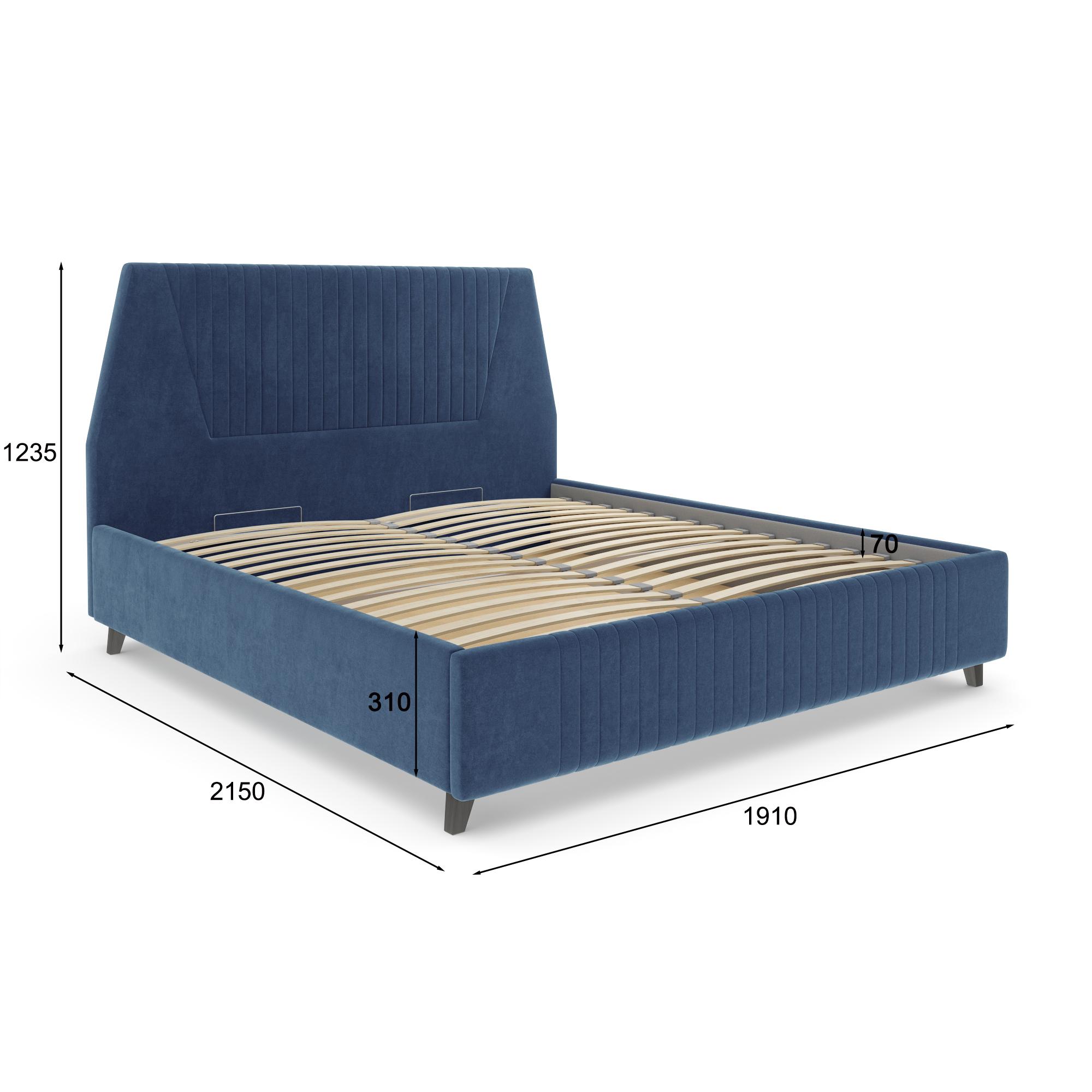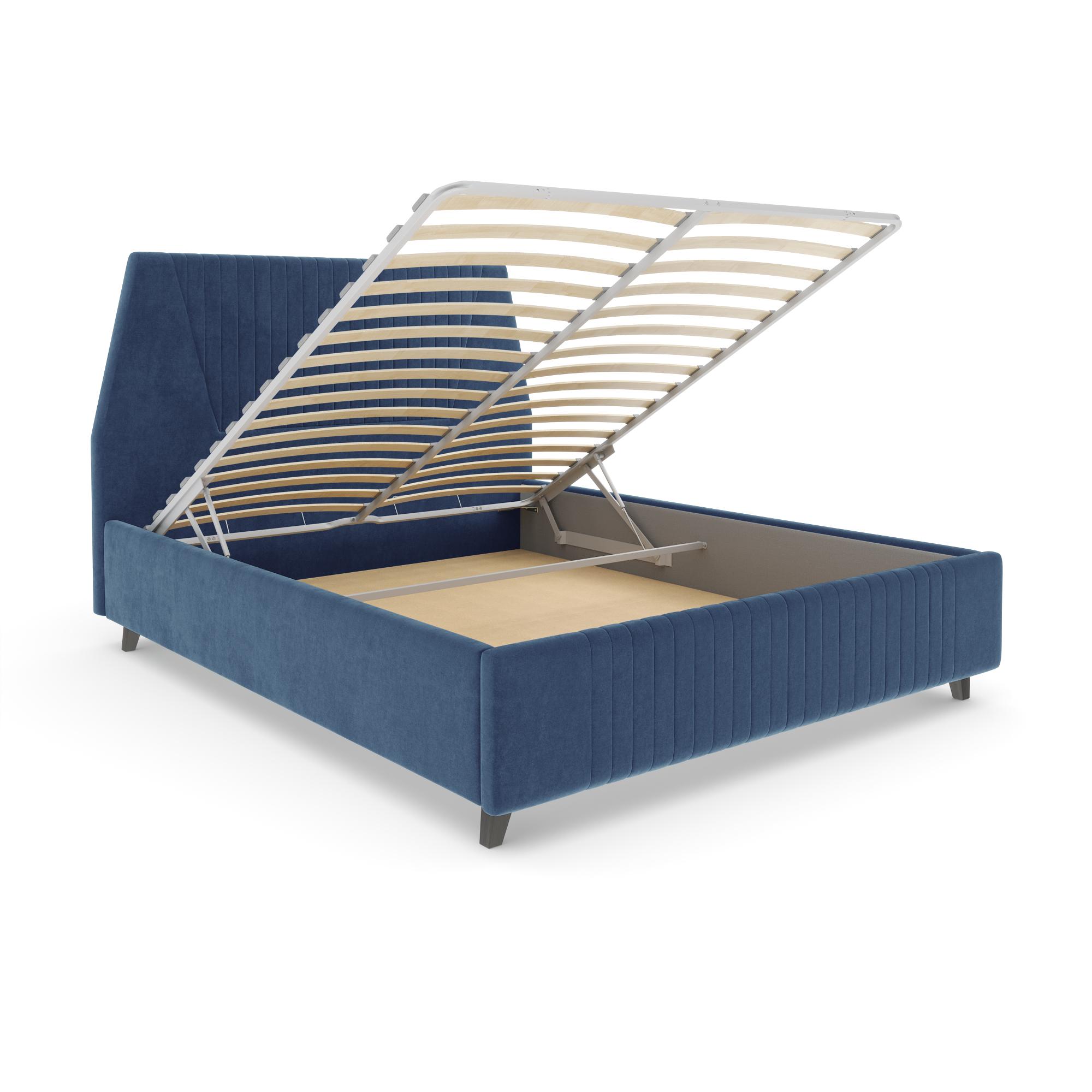 Дизайн на 360 градусов. Задняя спинка кровати выполнена в основной ткани, поэтому модель можно расположить в любой части комнаты, зонировать с её помощью пространство спальни. Подъемный механизм. Основание легко поднимается, открывая доступ к пространству для хранения вещей.