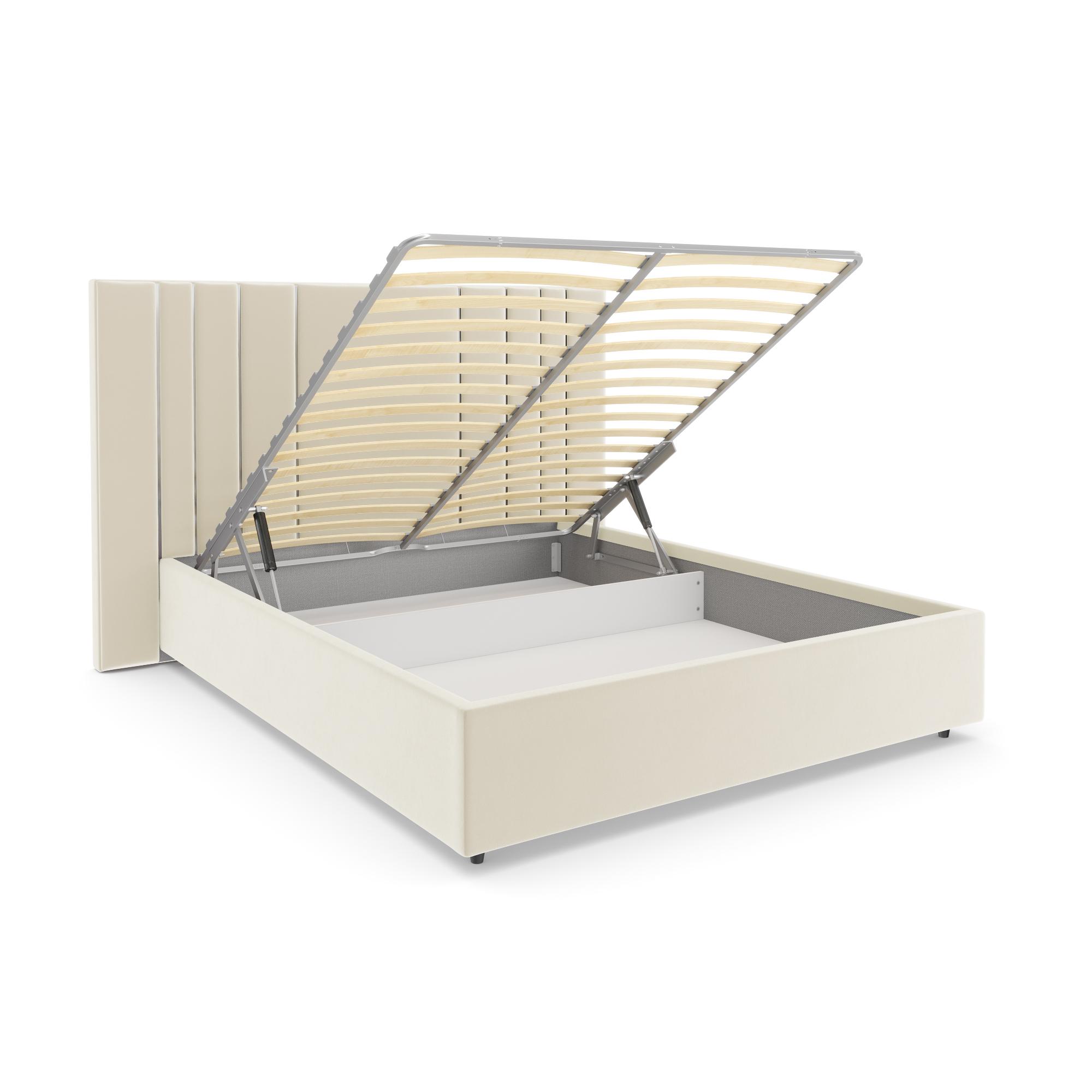 Удобный доступ к коробу. Газлифт поднимает и опускает основание вместе с матрасом, открывая доступ к пространству для хранения вещей.