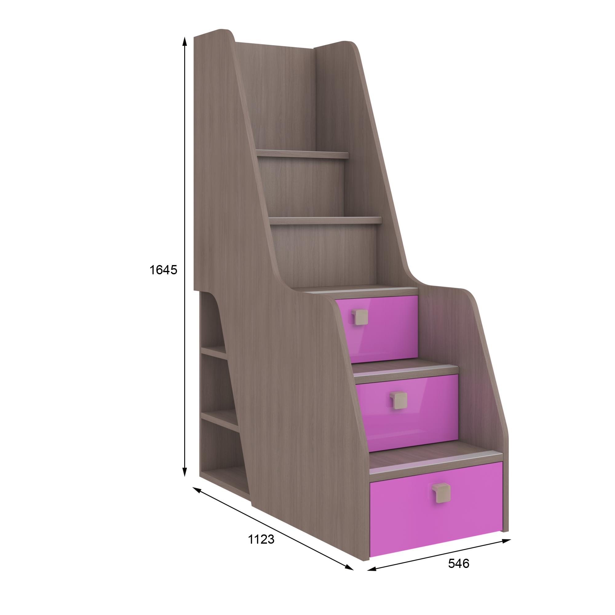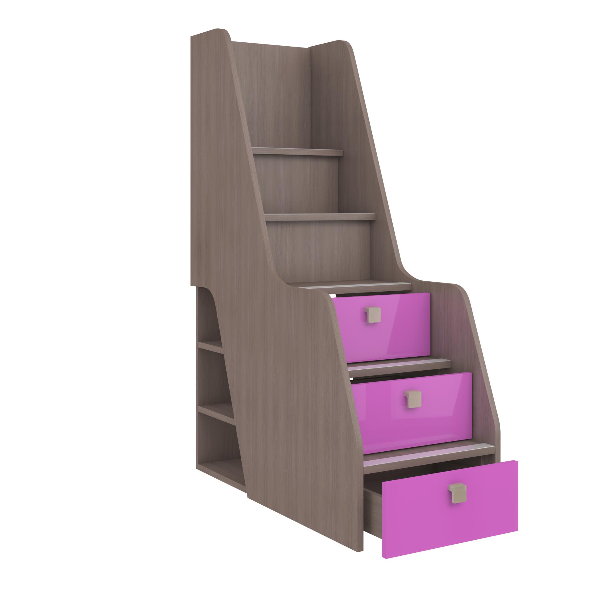 Три ящика. Три нижние ступеньки оборудованы ящиками на шариковых направляющих полного выдвижения, в которых удобно хранить мелкие предметы, игрушки и принадлежности.