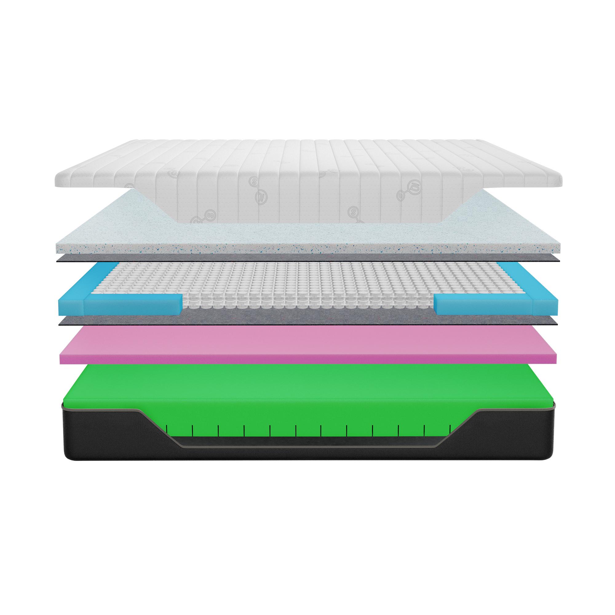 Пена Memory Gel с охлаждающими частицами. Обладает способностью отводить излишки тепла, выделяемого человеком во сне. Обеспечивает правильный уровень поддержки, способствует свободному кровообращению и насыщению клеток кислородом.
