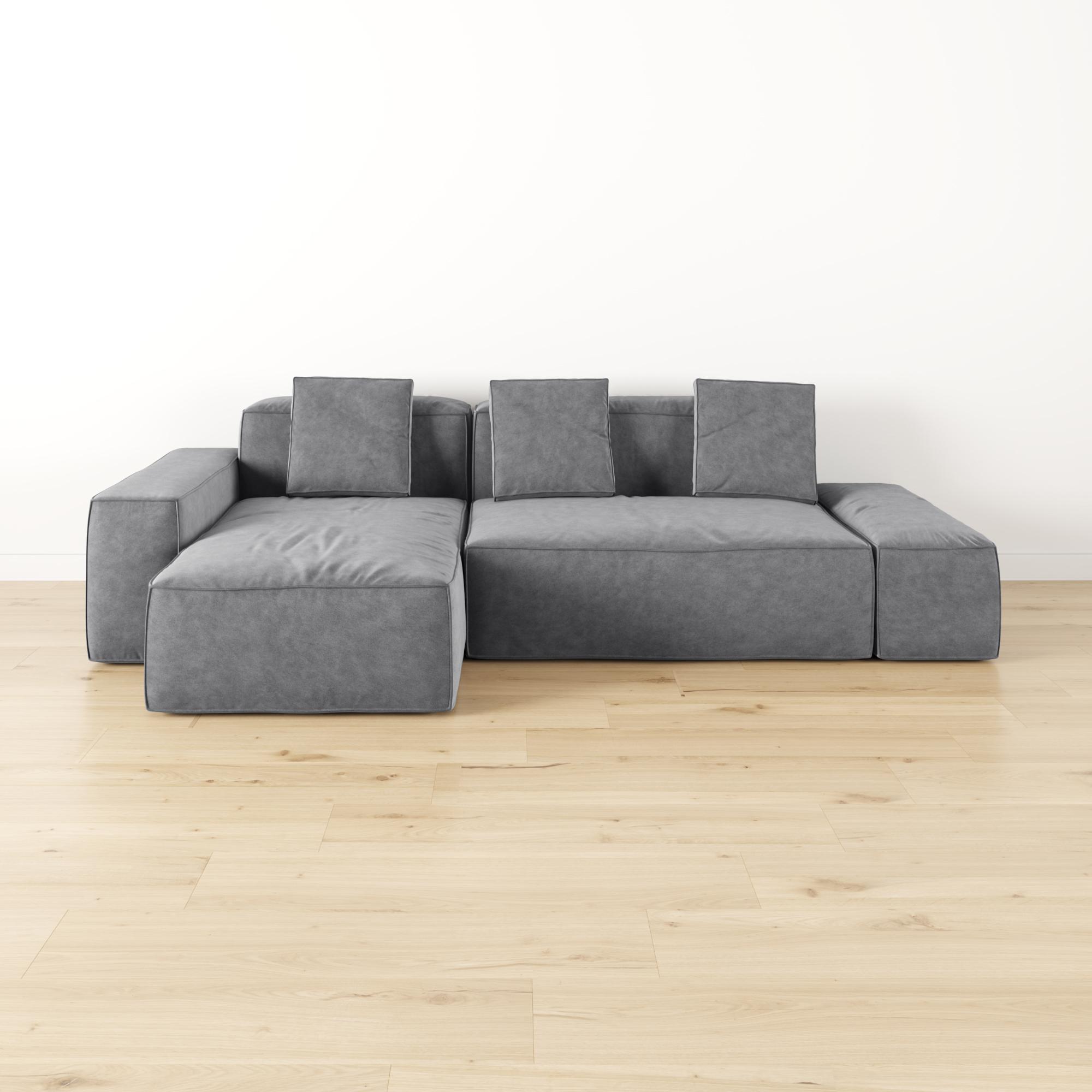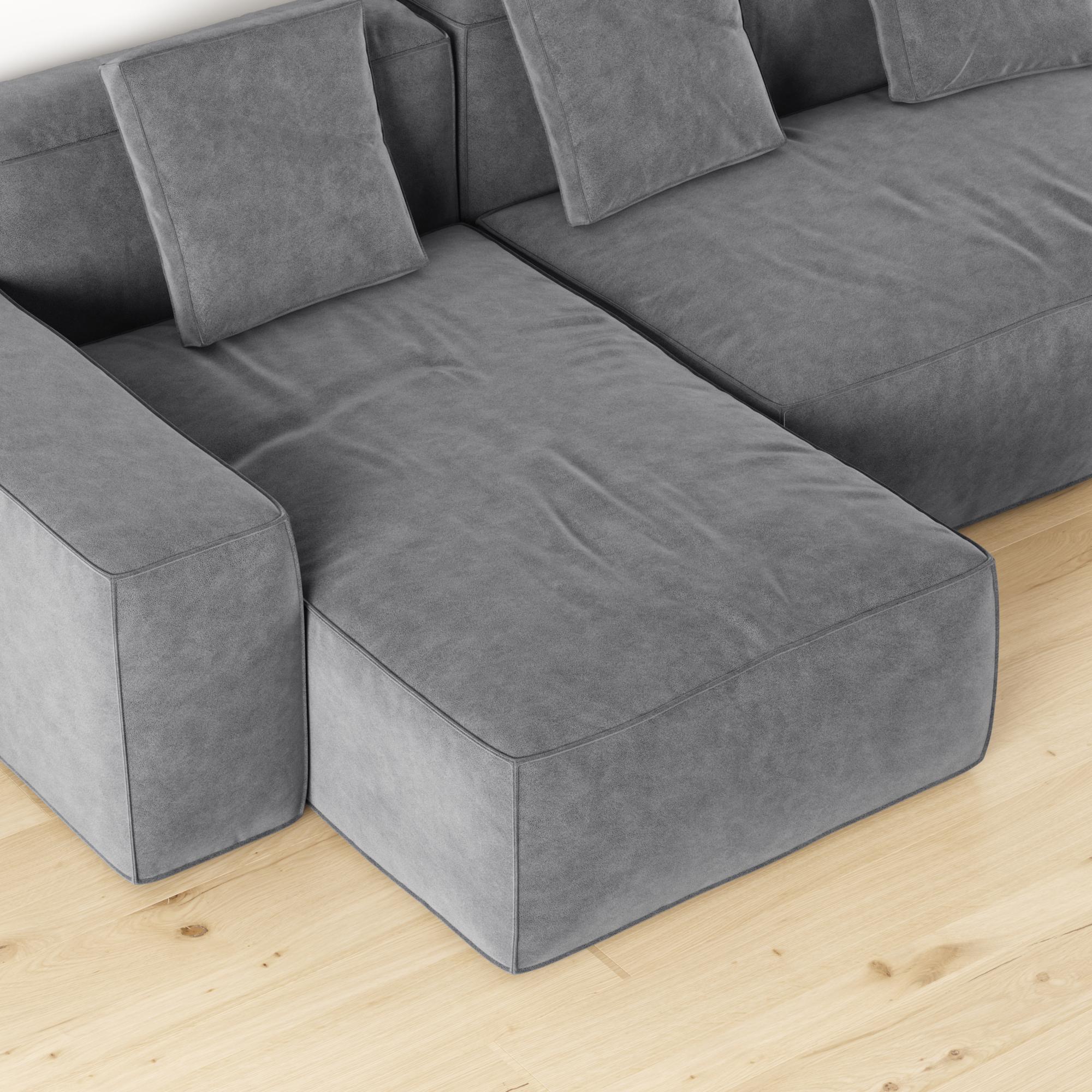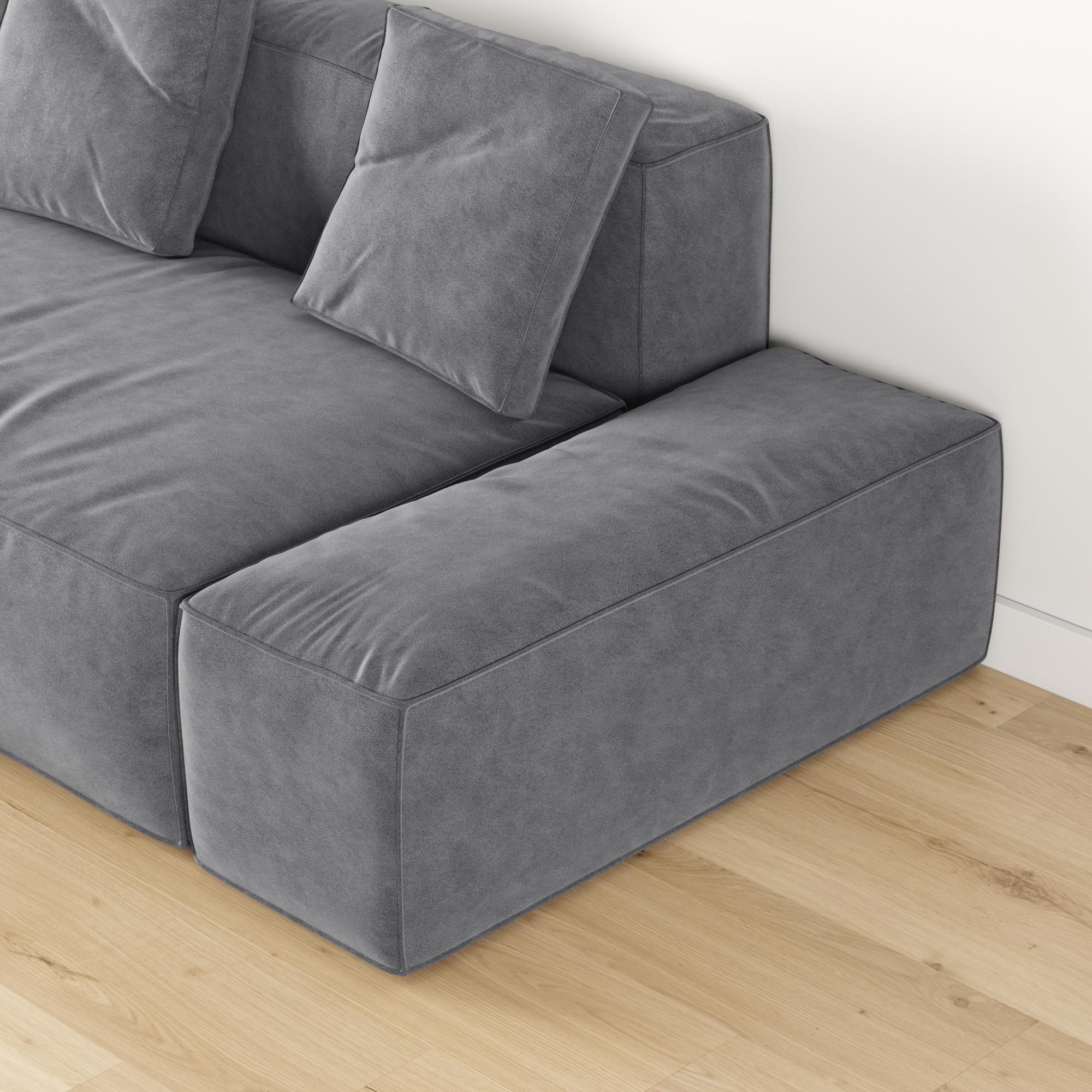 Пуф не крепится к основной части дивана. Большой пуф можно легко перемещать создавая различные композиционные решения.