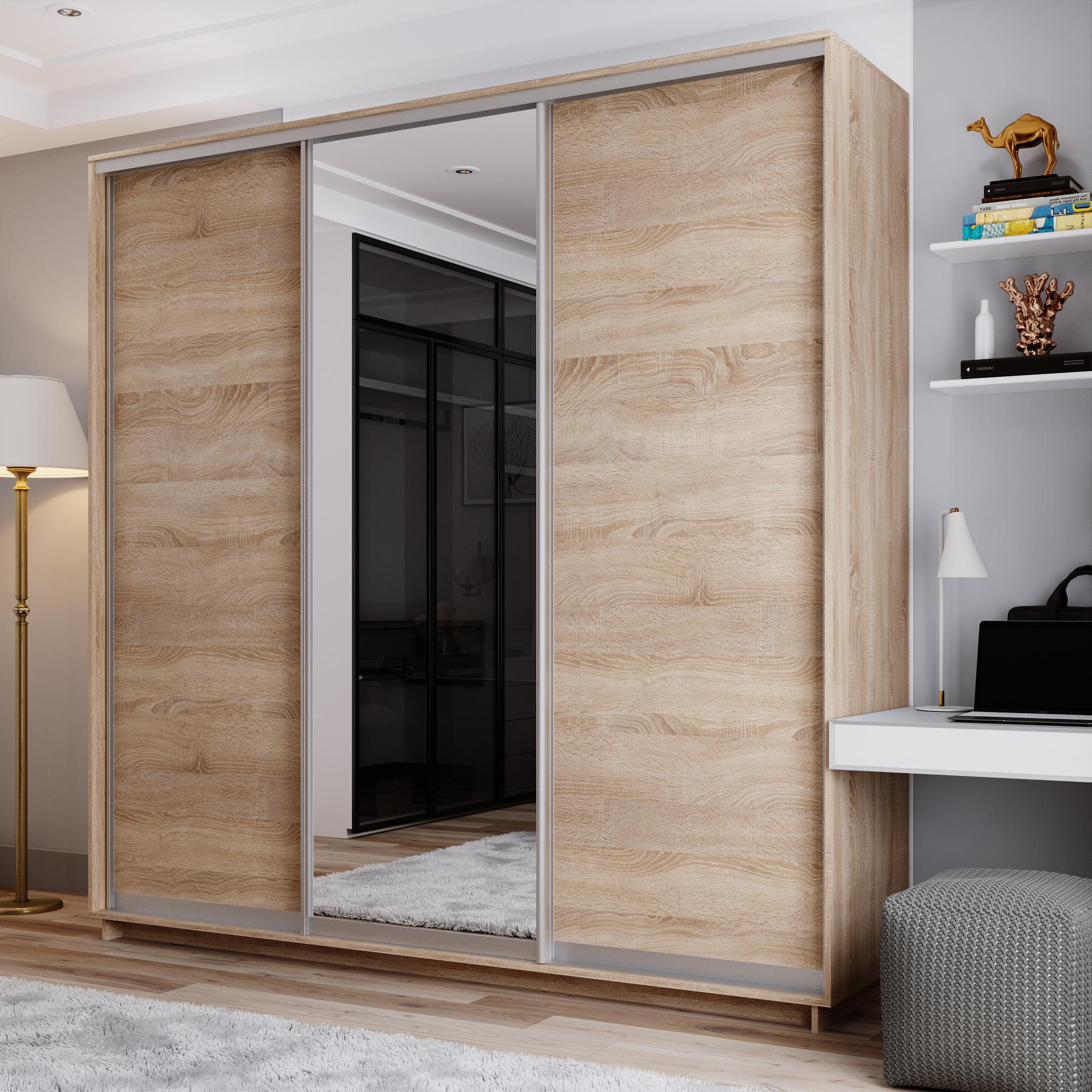 Тихий ход дверей и отсутствие пыли в шкафу. Благодаря алюминиевым профилям ход дверей плавный и тихий. Защитные щётки на профилях амортизируют двери при закрытии, препятствуют попаданию в шкаф пыли.