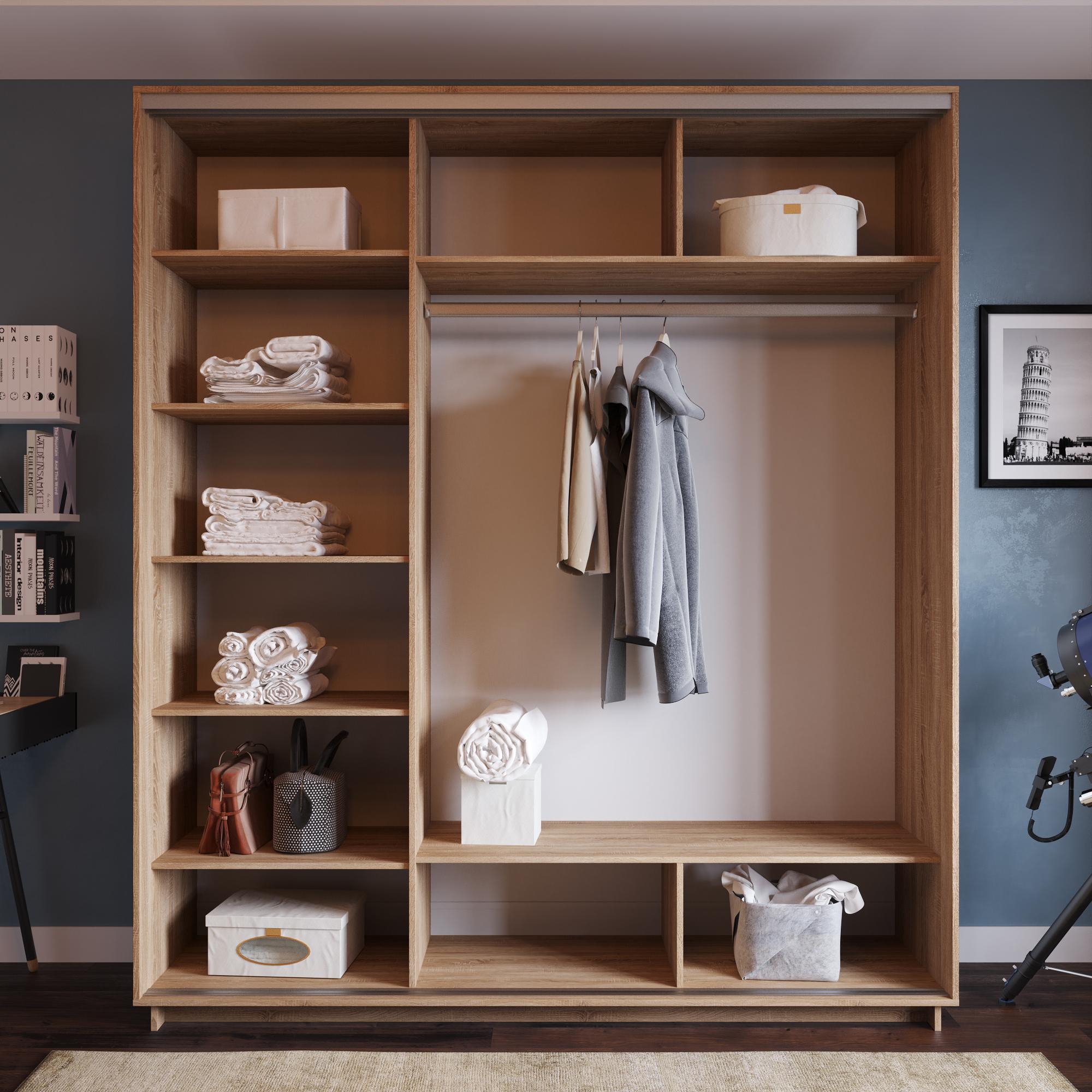 Возможность оснащения ящиками и стеллажом. Шкаф высотой 240 см можно дополнить стеллажом арт. 4346. Установить внутрь шкафа модуль с двумя ящиками подходящего размера. Для шкафов В240 х Г60 см: арт. 4377, 4378, 4379. Для шкафов В220 х Г60 см: арт. 7976, 7977, 7978.