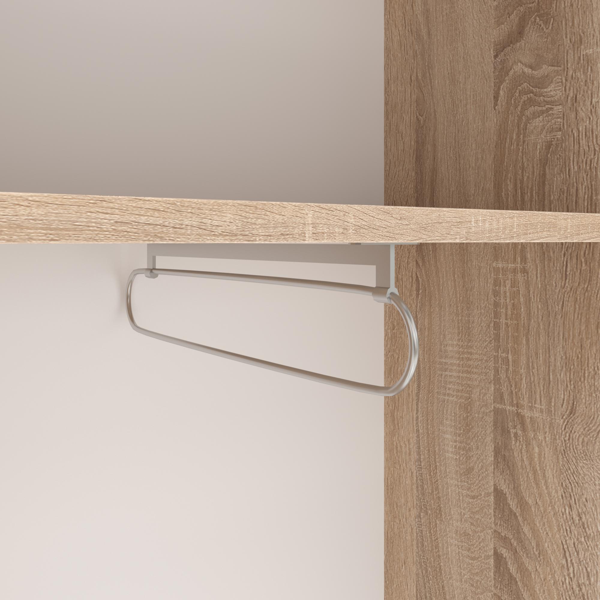 Прочная задняя стенка. Высокопрочная плита ХДФ белого цвета не прогнётся со временем. Стенка исключает проваливание одежды между полкой и стеной.