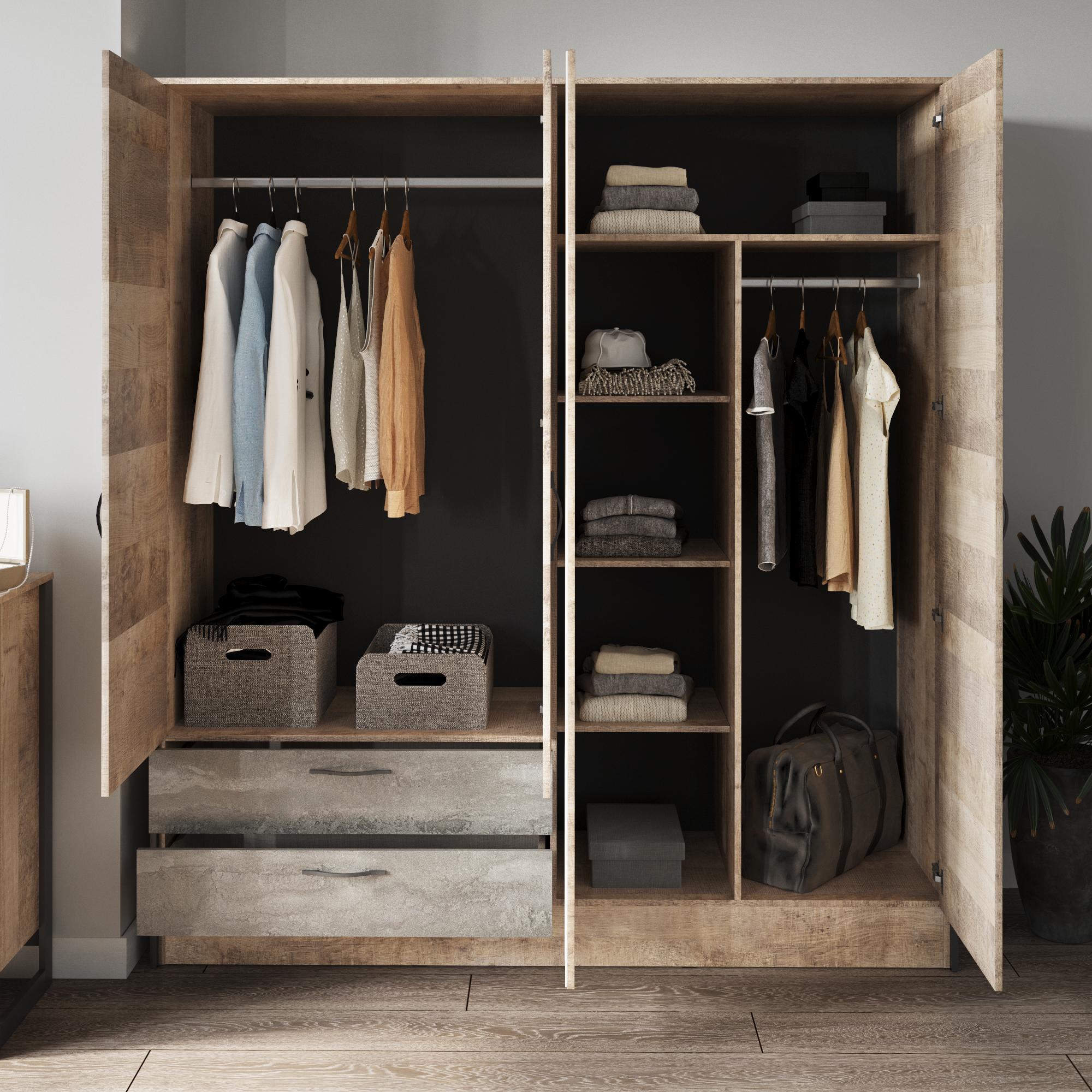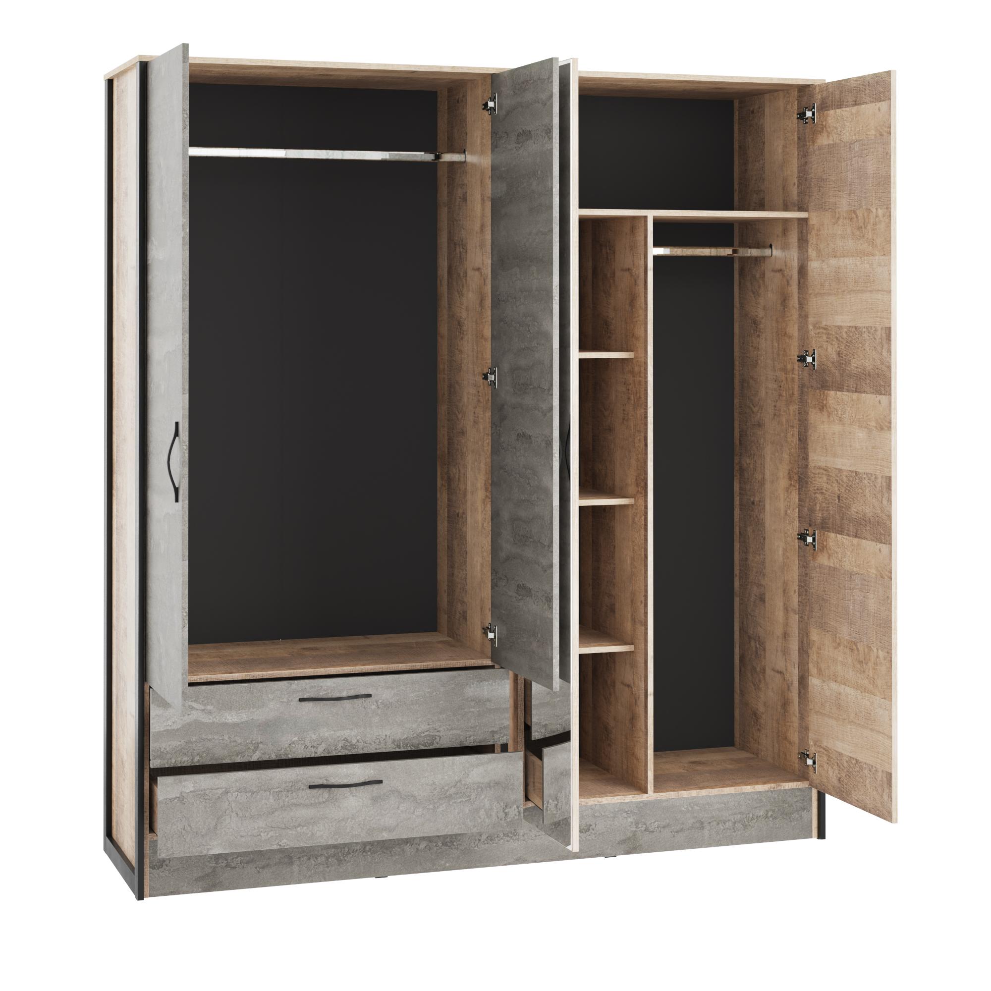 - Правое отделение со штангой и полками. Предназначено для хранения рубашек и брюк на плечиках, аксессуаров на полках.