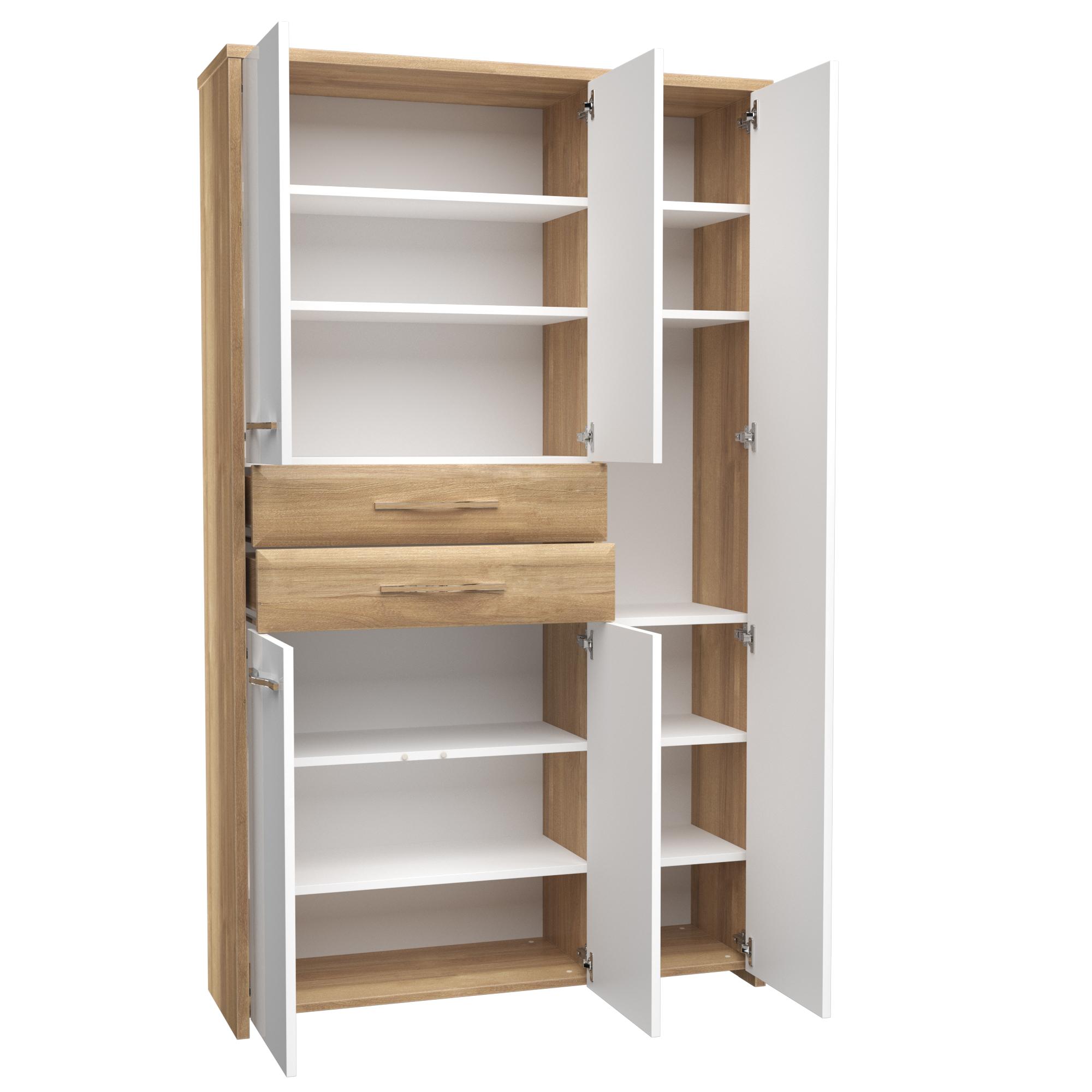 Высота между полками: в верхнем отделении — 23 см, 20,6 см, 28,7 см, в нижнем отделении — 26,2 см, 23,8 см, 21,5 см, в боковом — 23 см, 20,6 см, 59 см, 23,8 см, 23,8 см, 21,5 см.