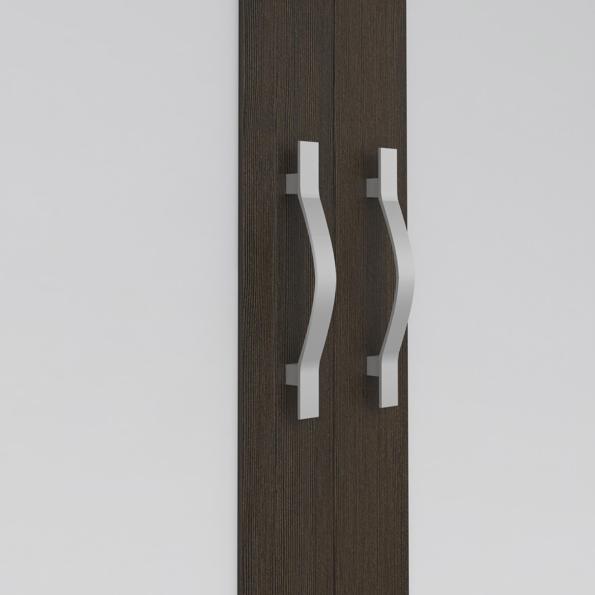 Штанга и полки. Внутри шкафа предусмотрены малые полки для сложенных вещей, штанга для одежды на вешалках и две широкие полки для коробок с обувью.