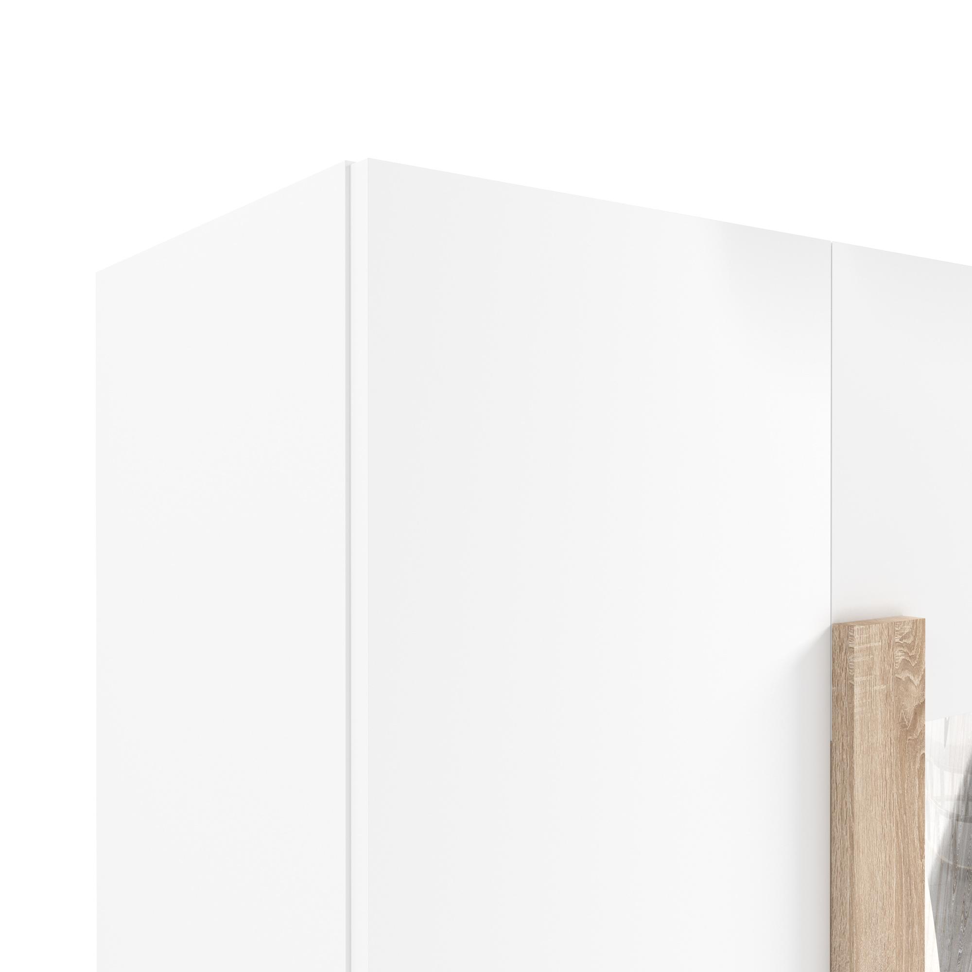 - Модная комбинация цветов. Белый корпус разбавлен тёплым древесным цветом витрины в оттенке «Дуб сонома».