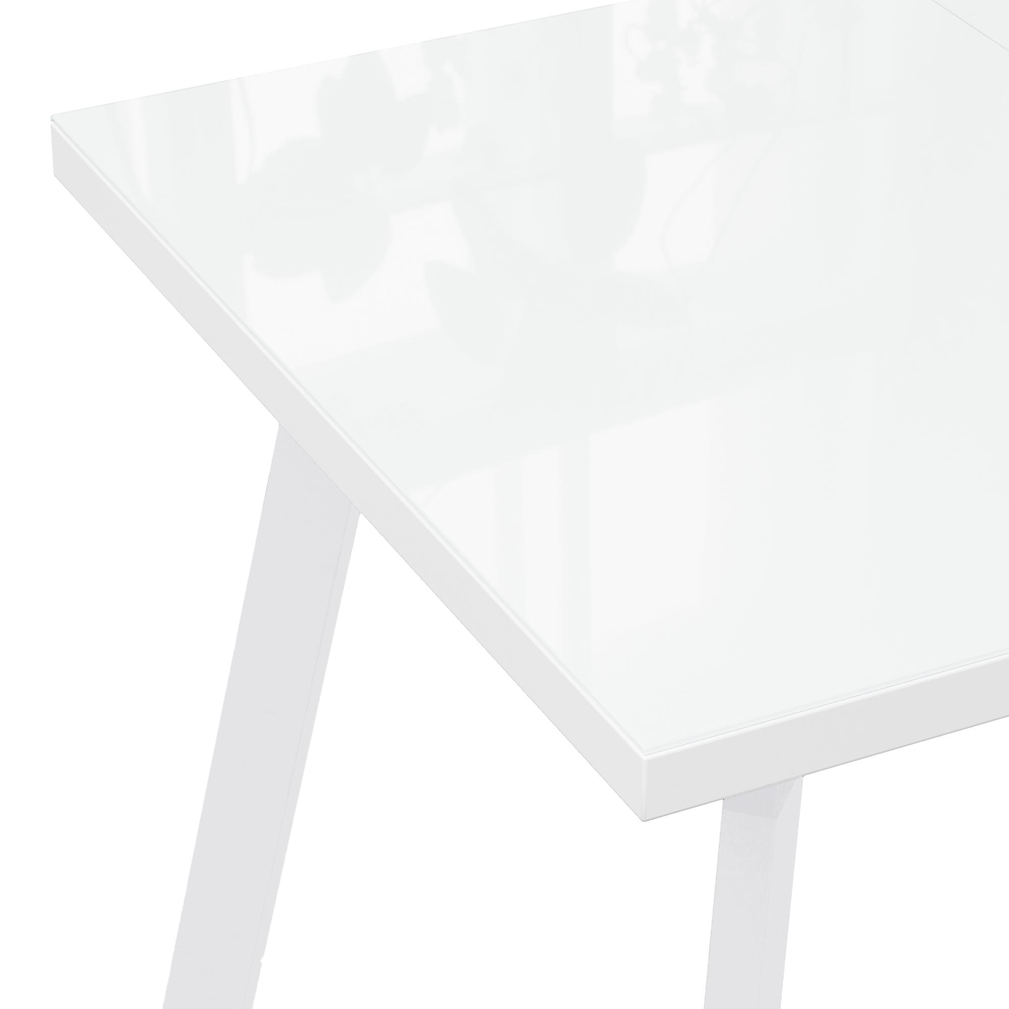 Столешница из закалённого стекла. Стол не пострадает, если поставить на него горячие блюда. Благодаря гладкой поверхности стекла со стола легко удалять загрязнения.