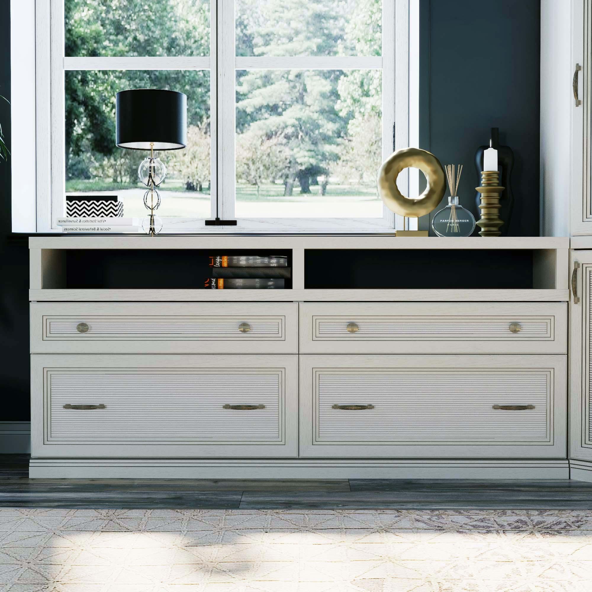 - Четыре ящика. Два верхних ящика имеют малую глубину и удобны для хранения ТВ аксессуаров. В двух нижних глубоких ящиках поместятся объемные предметы, текстиль и сложенные вещи.