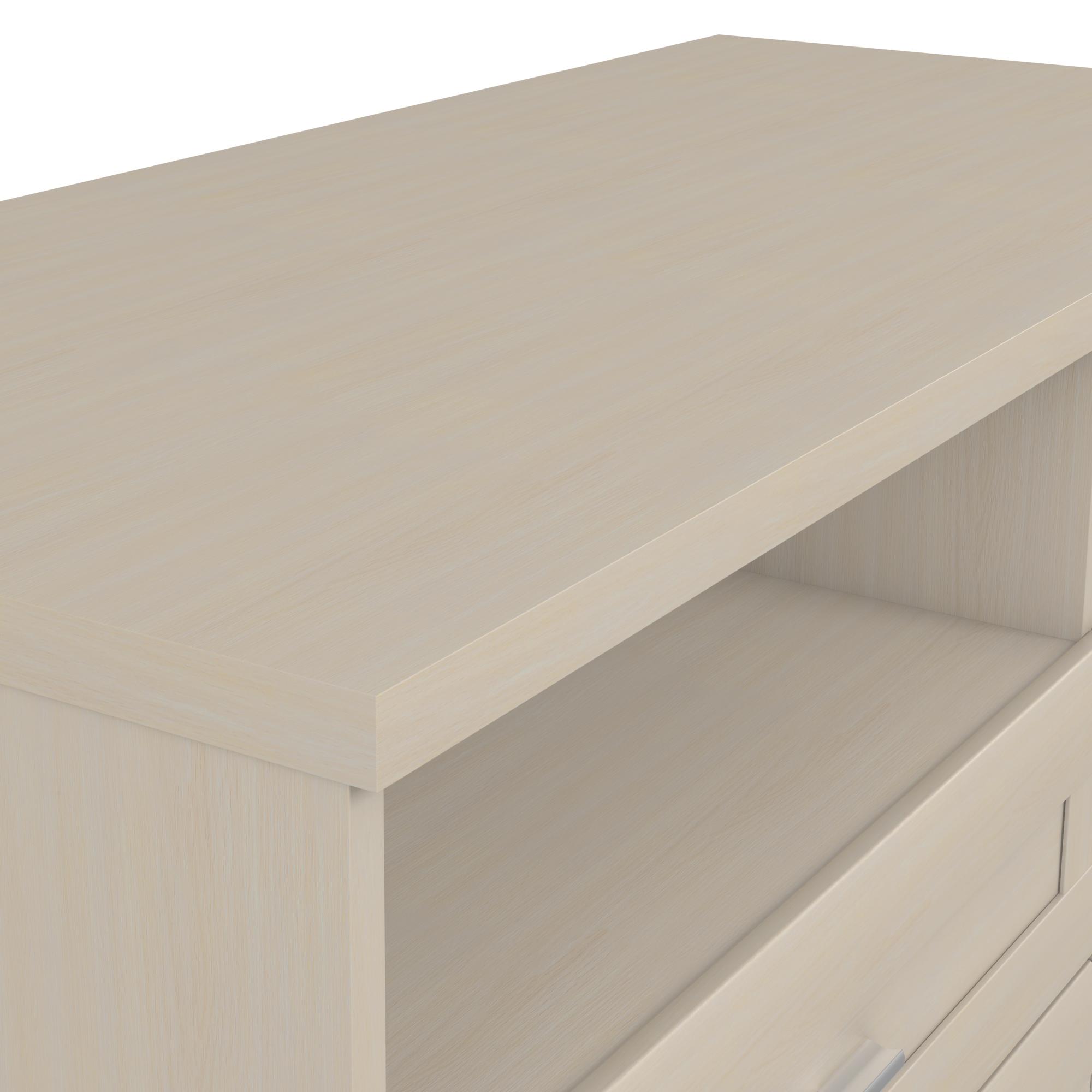 - Широкая столешница и две сквозные полки. На тумбу можно поставить телевизор любой диагонали, а на сквозных полках установить мультимедиа устройства, игровую консоль.